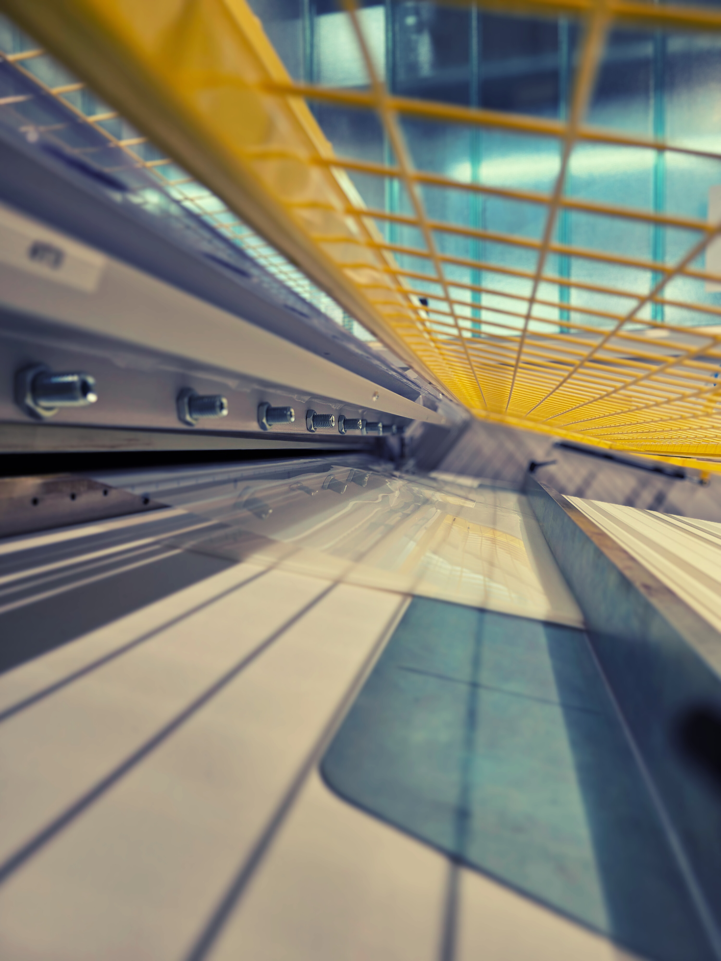 Für das Herstellen von Großformaten oder Zuschnitten ist neben dem Längsschneiden auch das Querschneiden erforderlich. Bei diesem Fertigungsverfahren arbeiten wir von Rolle zu Bogen. Hauler & Hermann betreibt hier verschiedene Anlagen die teilweise sogar Längs- und Querschneiden können. Die Toleranzen müssen je nach Abmessung und Material im Detail geklärt werden. Nach dem rechtwinkligen Schnitt können die Bögen je nach Anforderung auch gestapelt und paketiert werden.